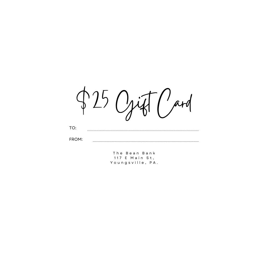 1 lb Ground Beans $18.99 1 lb Whole Beans $18.99 Decaf Cold Brew Coffee Packets – 4 Pack $11.99 Cold Brew Coffee Packets – 4 Pack $11.99 Flavored Decaf Ground Coffee $19.99 K-Cup Decaf Coffee Pods 12 pack $11.99 Flavored Ground Coffee $19.99 Allegheny Espresso Beans 8oz $10.99 K-Cup Coffee Pods 12 pack $11.99 Hot Chocolate 12 pack $11.99 Large Flavor Sampler - each sample brews a 10-12 cup pot $55.00 Small Flavor Sampler - each sample brews a 10-12 cup pot $19.99 Bean Bank Coffee Gift Card from $25.00